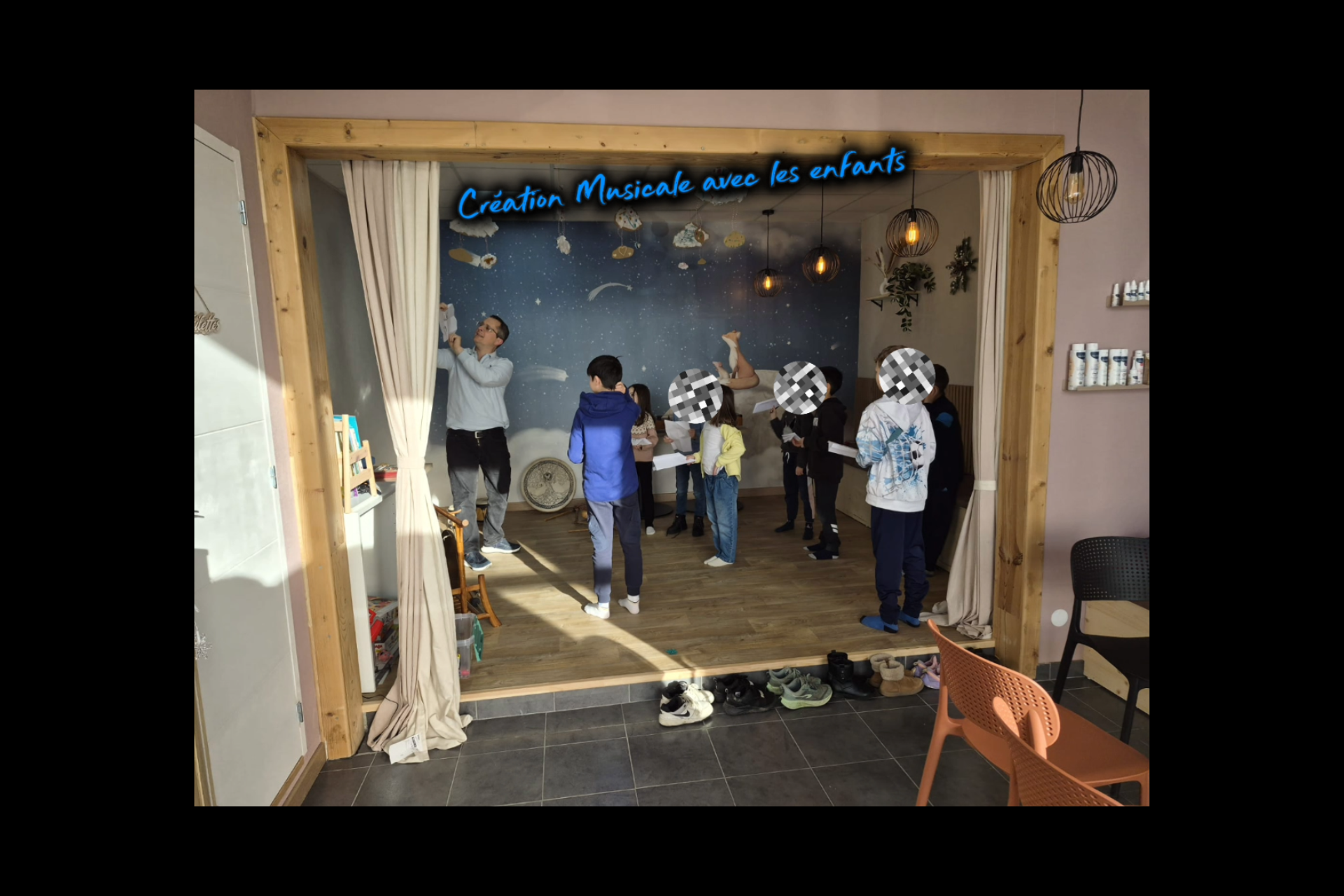 Les instruments et textes sont partagés et parfois écrits en live avec le public, pour devenir des créations uniques.